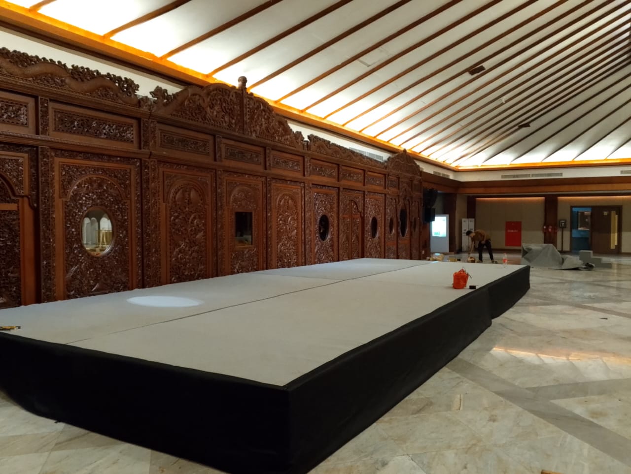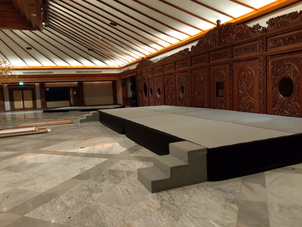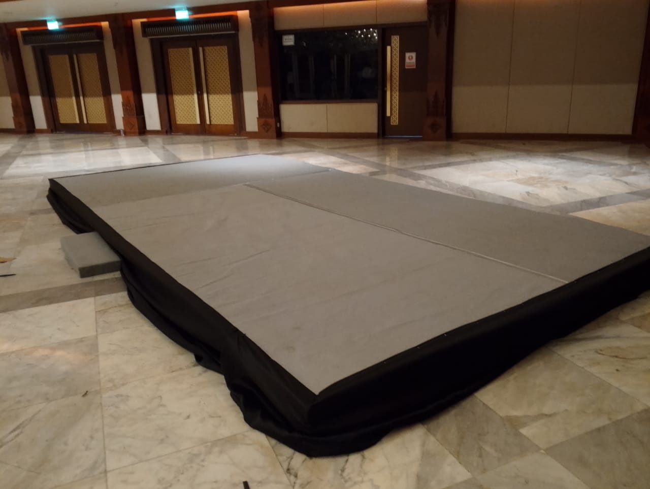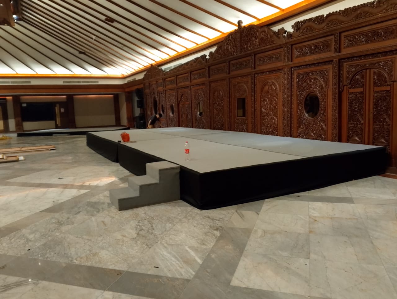 Panggung dari Bintang Jaya Pro dirancang dengan rangka besi yang kokoh dan alas multiplek berkualitas, dilapisi finishing karpet elegan. Tersedia dalam berbagai ukuran dan ketinggian, panggung ini fleksibel untuk menyesuaikan kebutuhan acara, baik indoor maupun outdoor