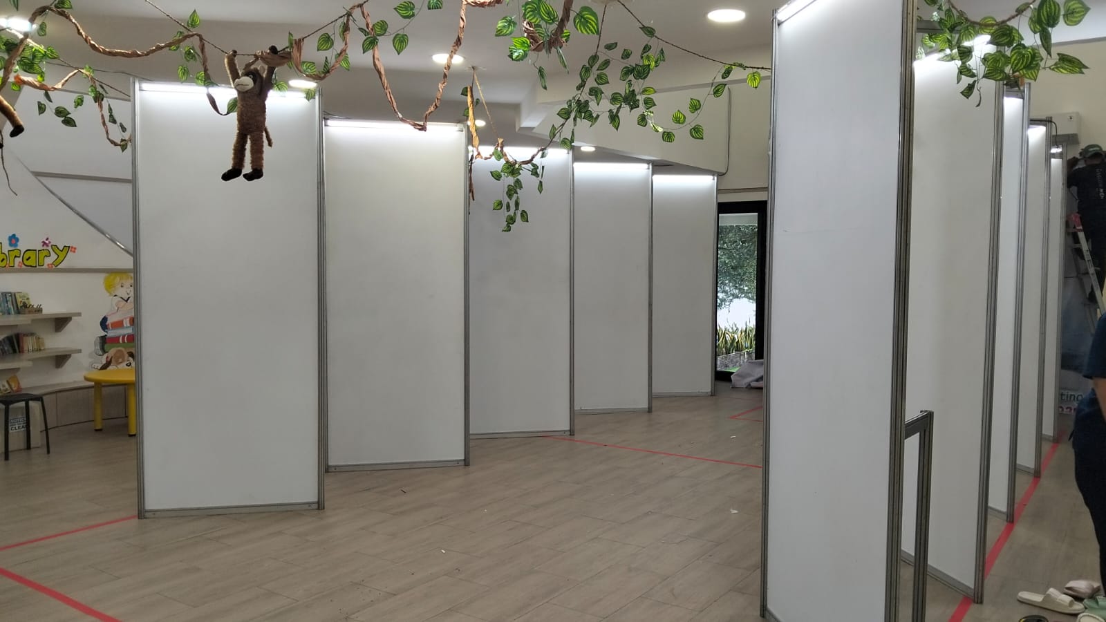 Partisi R8 memiliki rangka berbahan aluminium solid berkualitas tinggi yang ringan namun kuat, serta dilengkapi panel dinding yang halus dan mudah dikustomisasi. Panel-partisi ini bisa dipasangkan dengan branding, logo, maupun dekorasi tambahan, sesuai tema acara yang diinginkan.